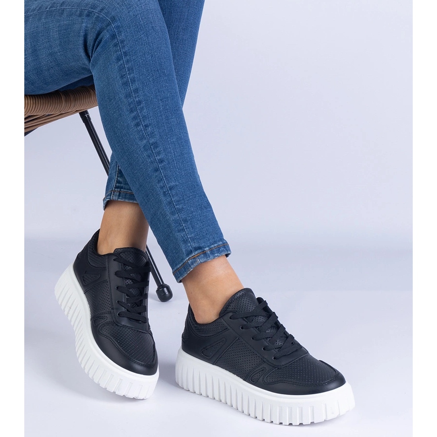 Fabriqué en cuir écologique de haute qualité, les baskets sont caractérisées par une couleur noire élégante qui va parfaitement avec toute stylisation. La finition OpenWork ne leur ajoute pas seulement la subtilité, mais offre également une excellente ventilation, ce qui les rend parfaits pour les jours plus chauds.