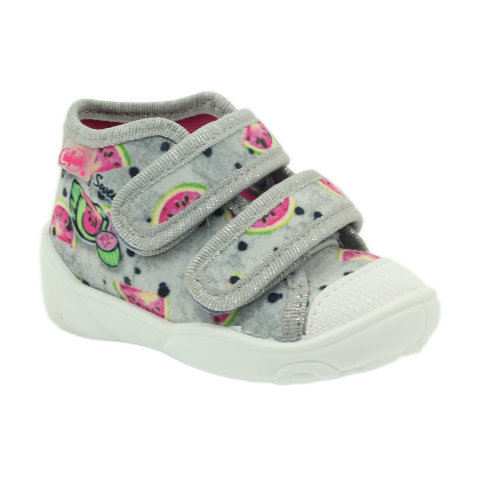 Les baskets Befado à imprimé pastèque sont le choix parfait pour les petits explorateurs ! Modèle wz. 212p055 en gris avec des accents verts et roses, allie design tendance et fonctionnalité. Ces baskets fonctionneront bien à la maison et dans la cour, offrant confort et style.