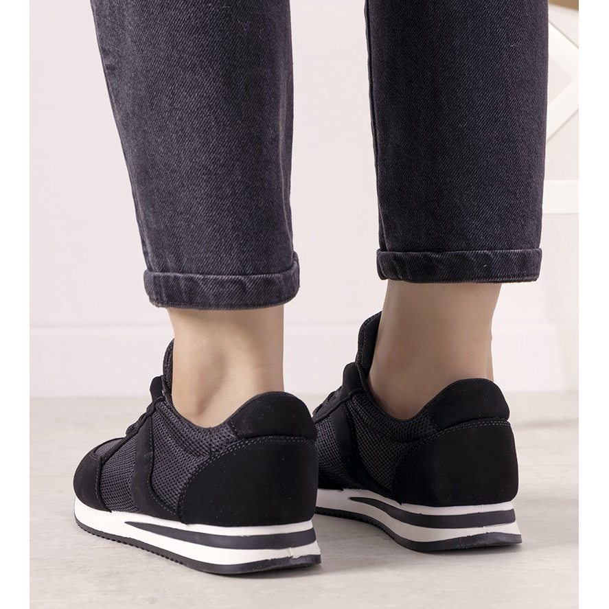 La tige des chaussures est en daim écologique avec des inserts en tissu, ce qui non seulement ajoute de l'élégance, mais assure également une ventilation adéquate. La semelle haute blanche crée un contraste saisissant avec le noir et garantit en même temps un confort de port, faisant de ces baskets le compagnon idéal au quotidien.