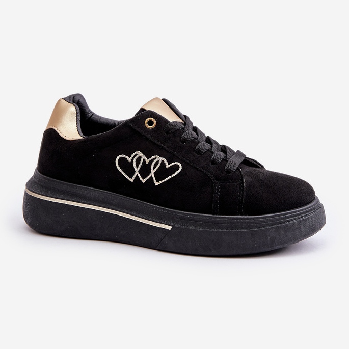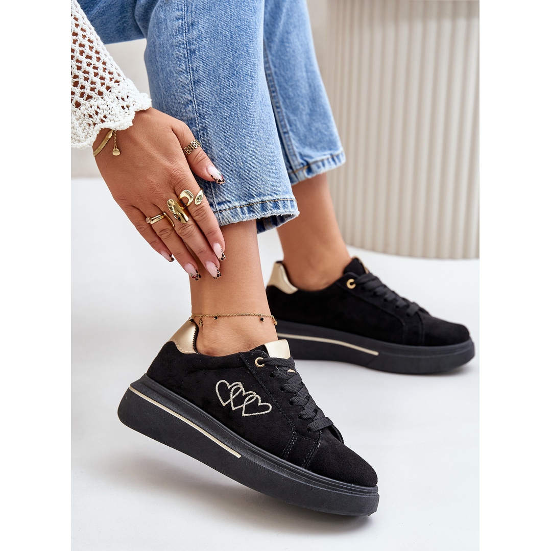 Détails: Baskets Plateforme Femme Avec Coeurs Noir Avirorae le noir