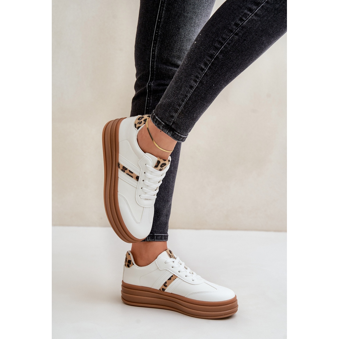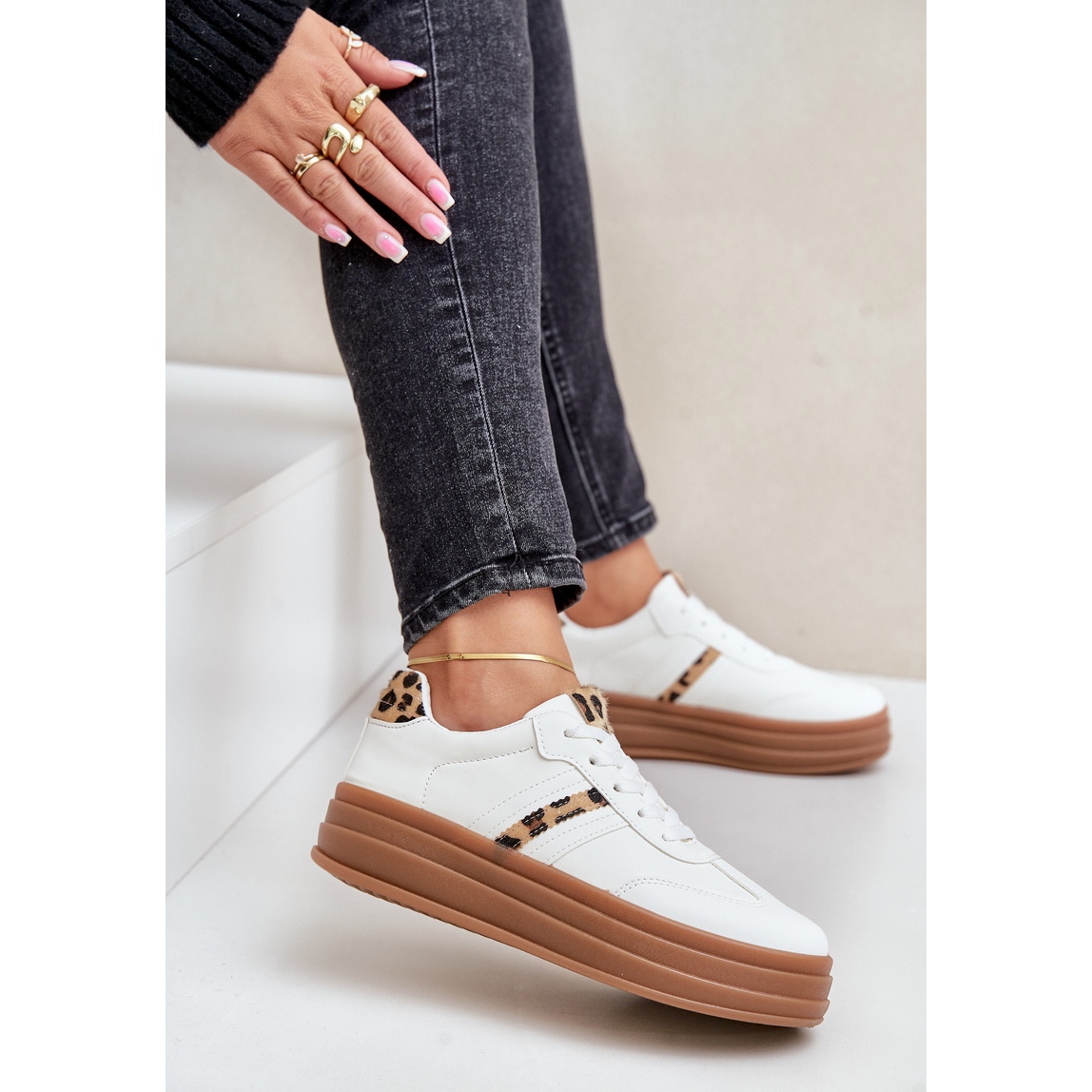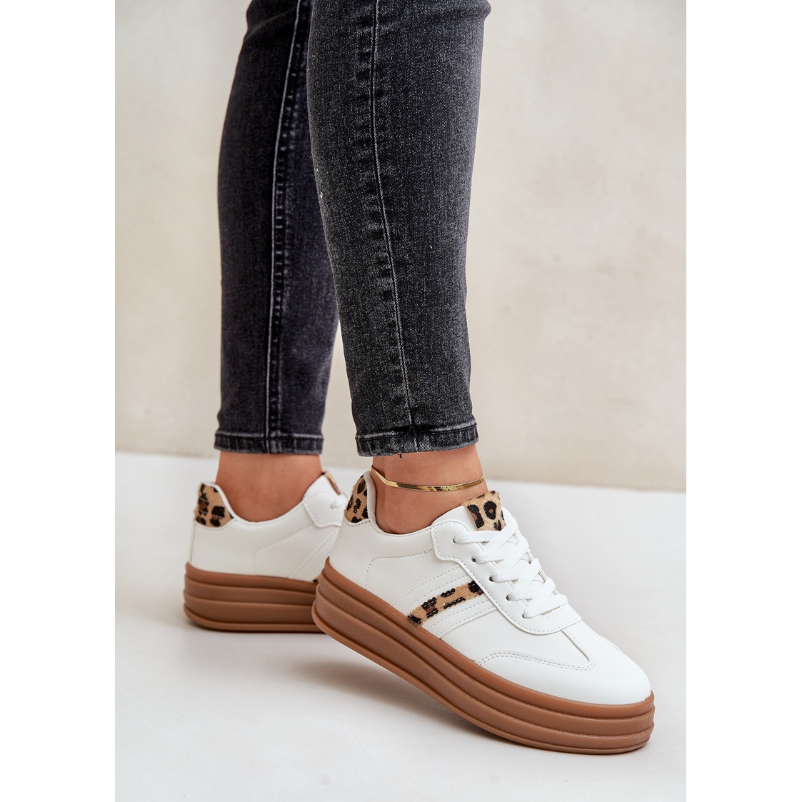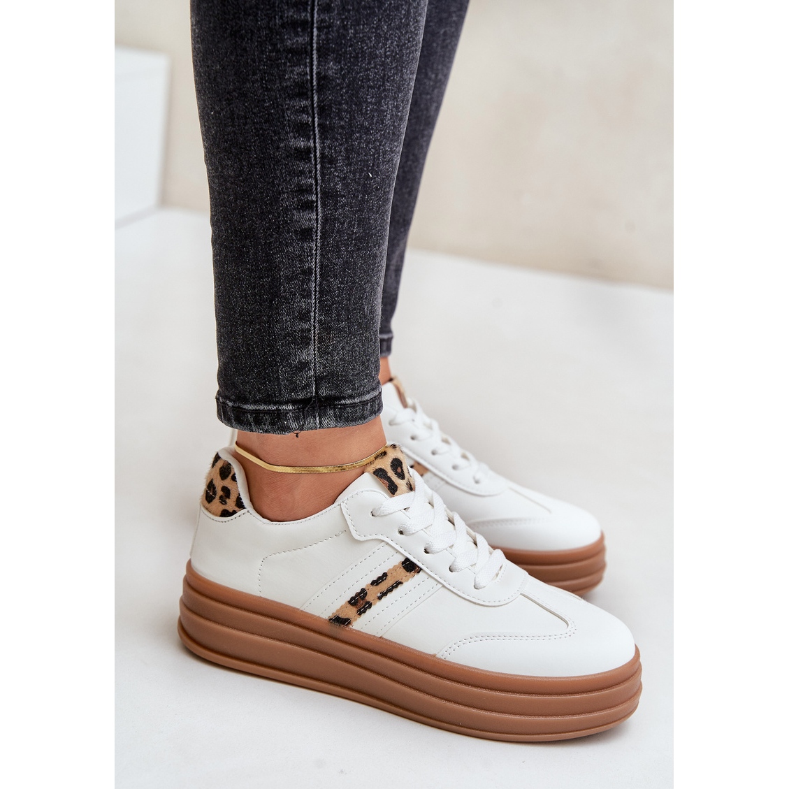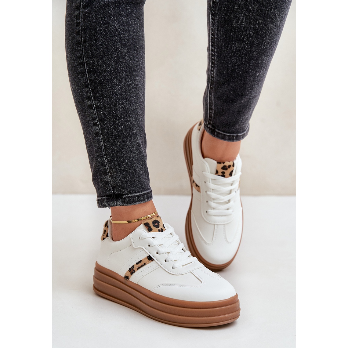 Détails: Baskets Plateforme Léopard Femme Blanches Dravinnia