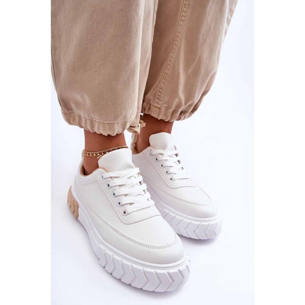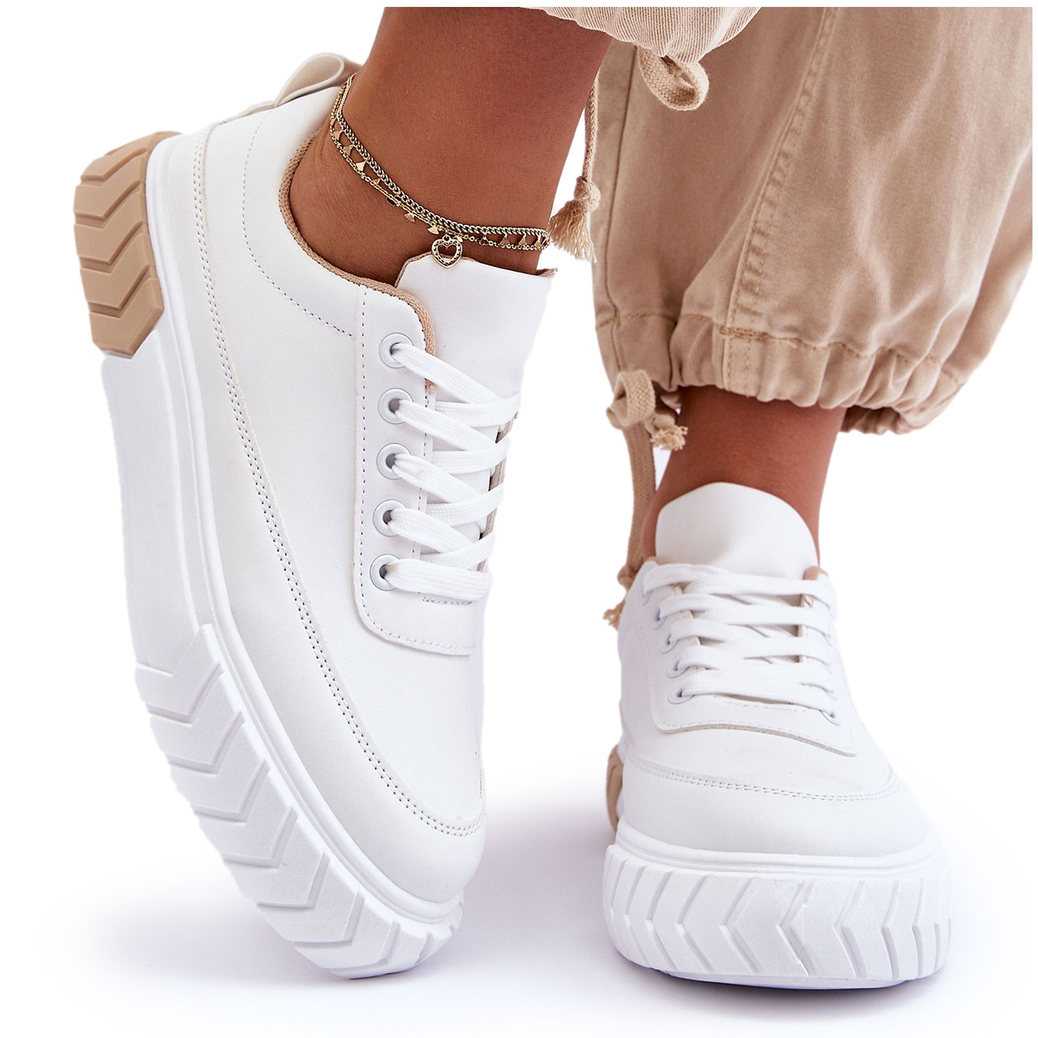 Chaussures de sport à plateforme classique PG1 Nannzie blanches et beiges – Un confort élégant à chaque pas
