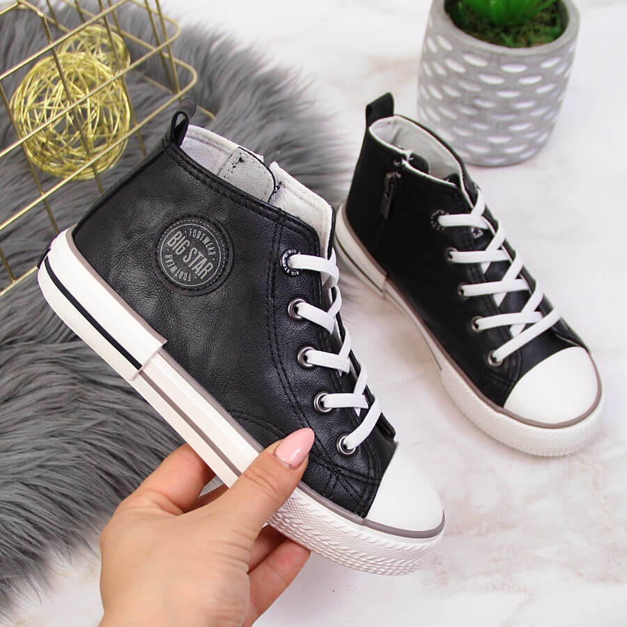 Sneakers pour enfants Eco Leather Black Big Star II374003 - Comfort et style tous les jours. Ces baskets hautes de la marque Big Star combinent un look classique avec des solutions pratiques, ce qui les fait fonctionner tout en jouant et en promenant.