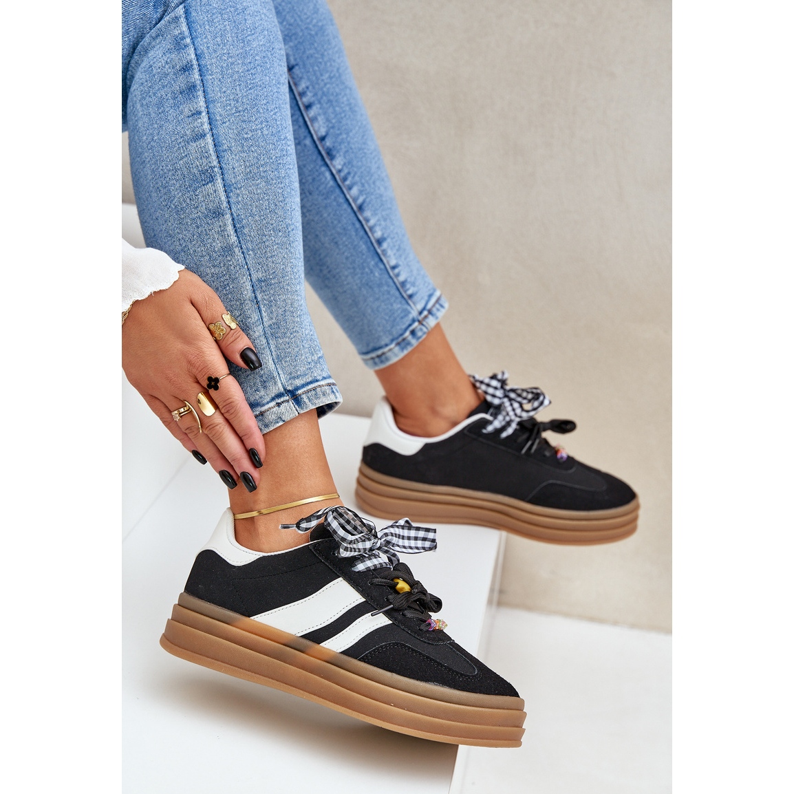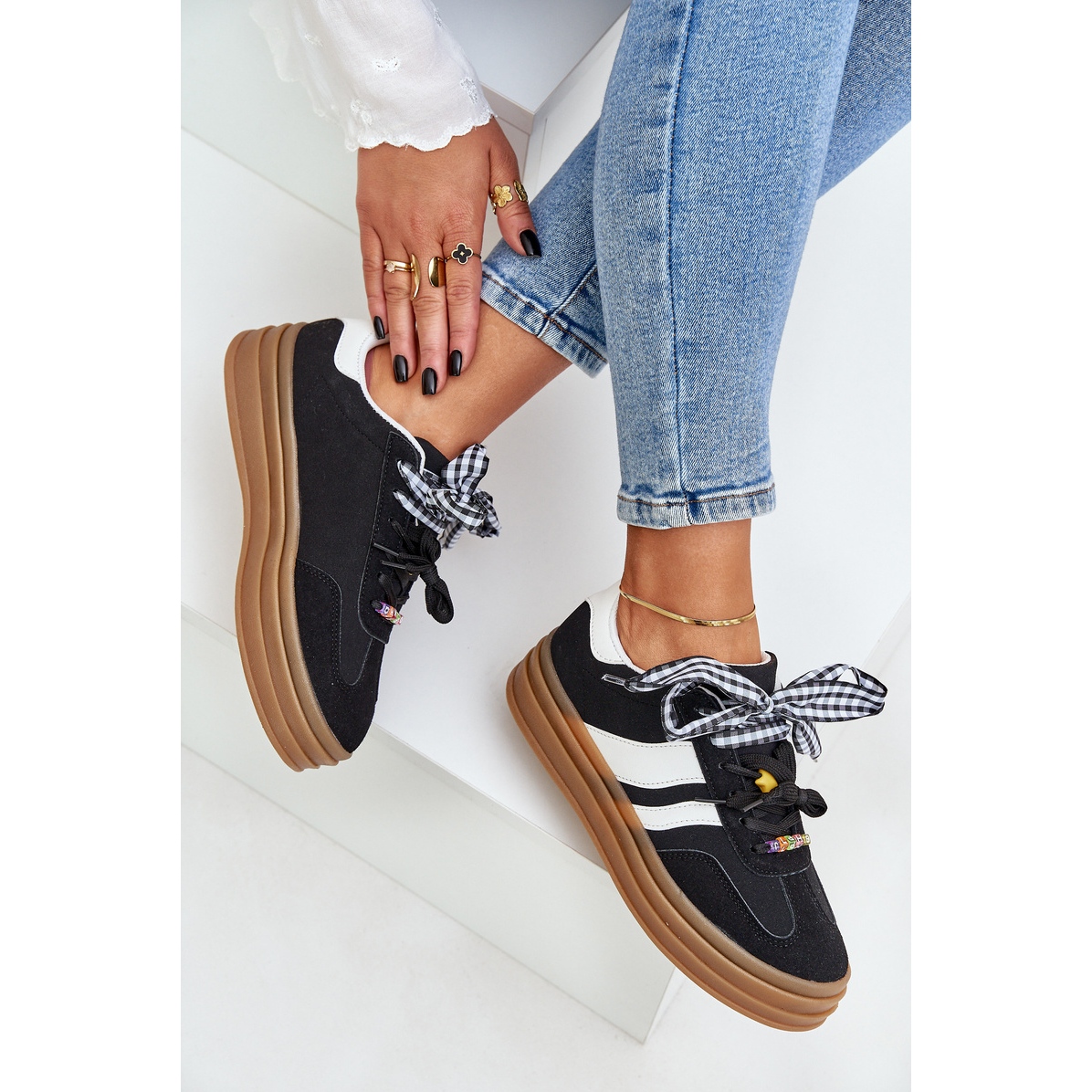 Découvrez l'élégance féminine combinée à un confort incroyable grâce à nos baskets pour femmes à la mode en noir avec des épingles! Fabriqués en daim eco de haute qualité, ces chaussures sont une excellente proposition pour chaque amateur de mode qui ne veut pas renoncer au confort chaque jour.