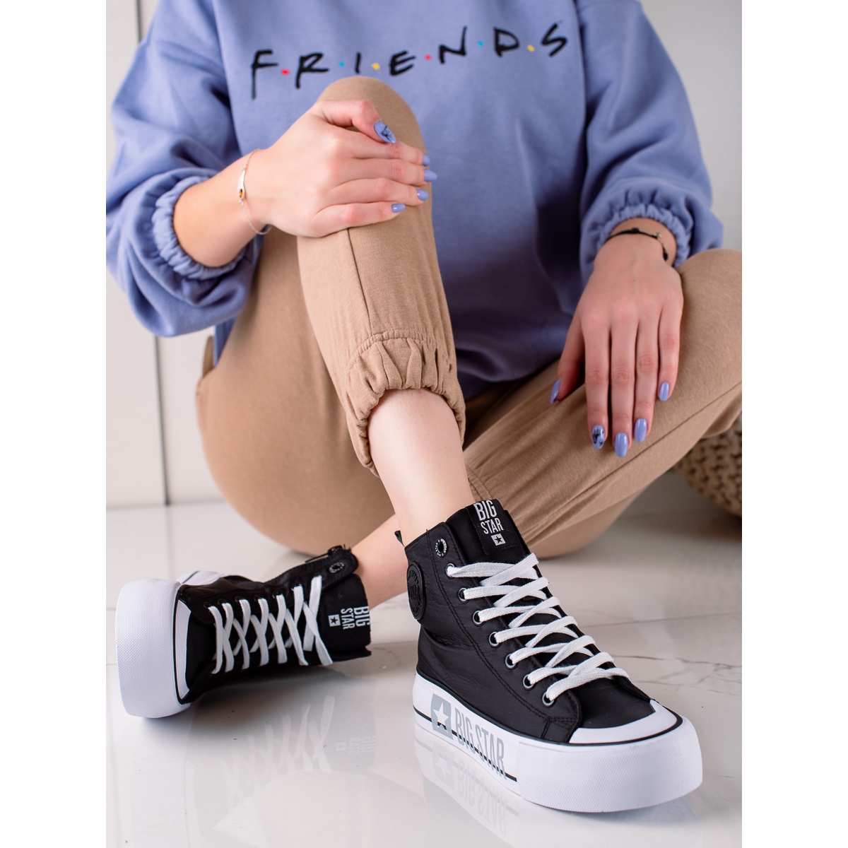 Voici les baskets pour femme Big Star II274012 dans une élégante couleur noire - le choix parfait pour toute femme à la mode ! Ces baskets montantes allient un style sportif à un caractère décontracté, ce qui les rend parfaites pour un style quotidien.