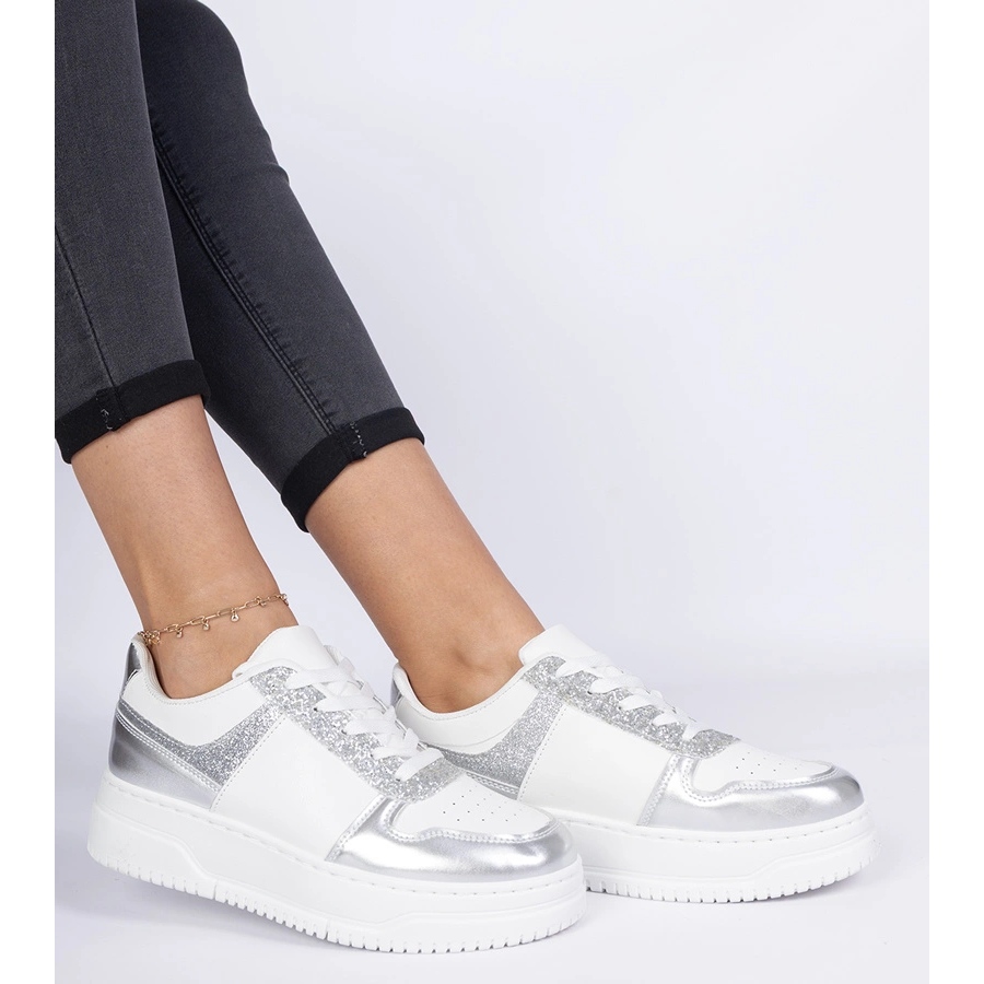 Détails: Baskets pour femmes en argent sur une semelle épaisse