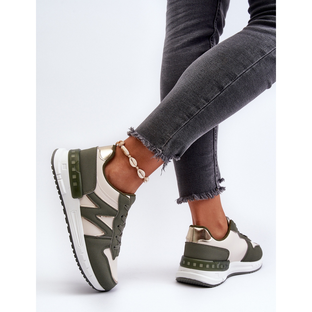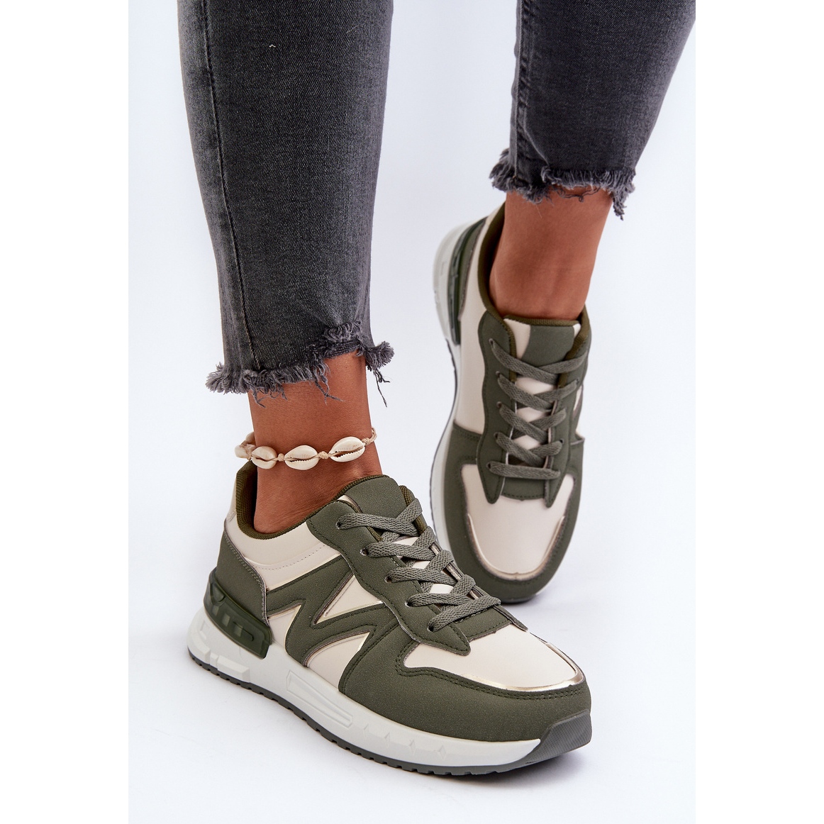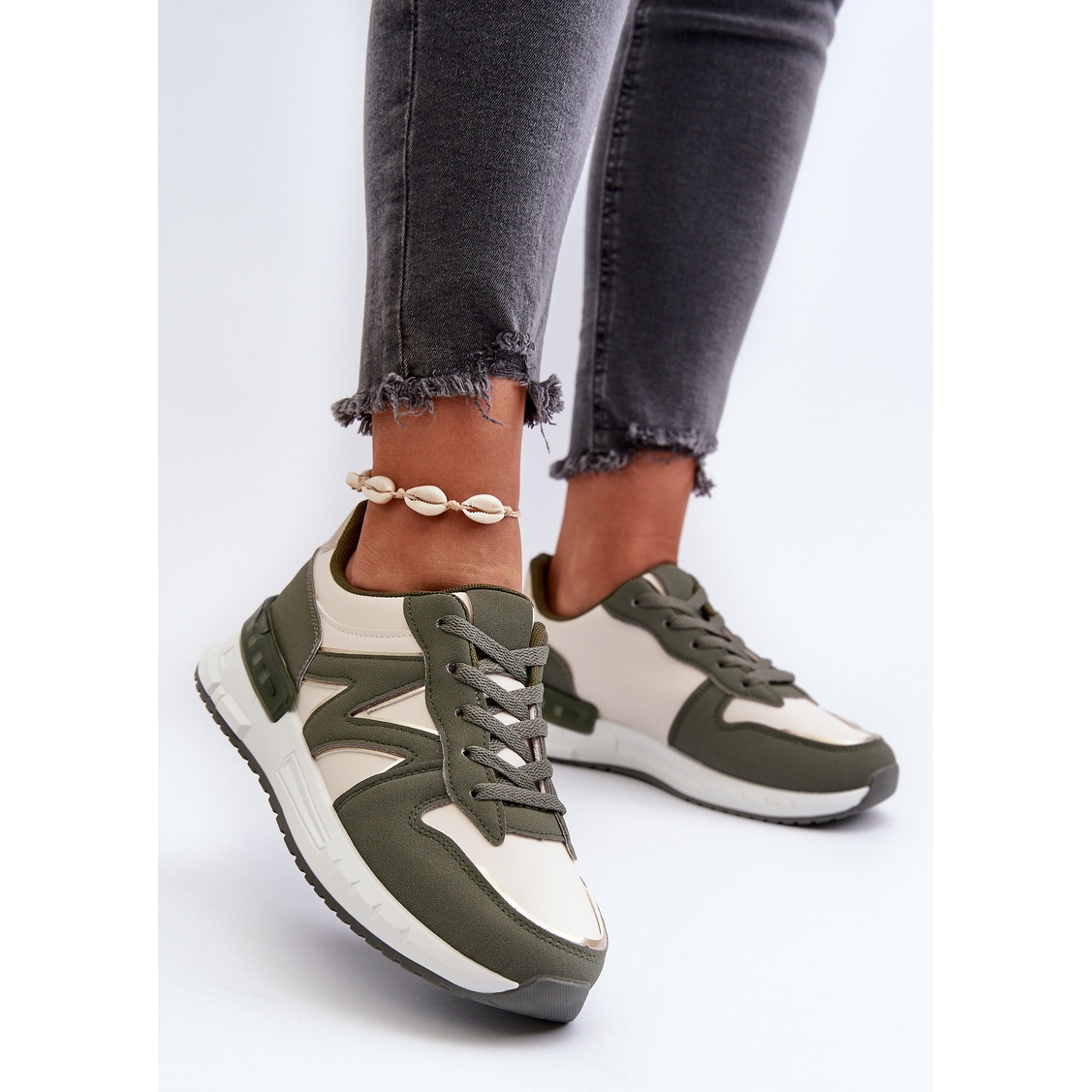 Détails: Baskets pour femmes en cuir écologique, vert Kaimans