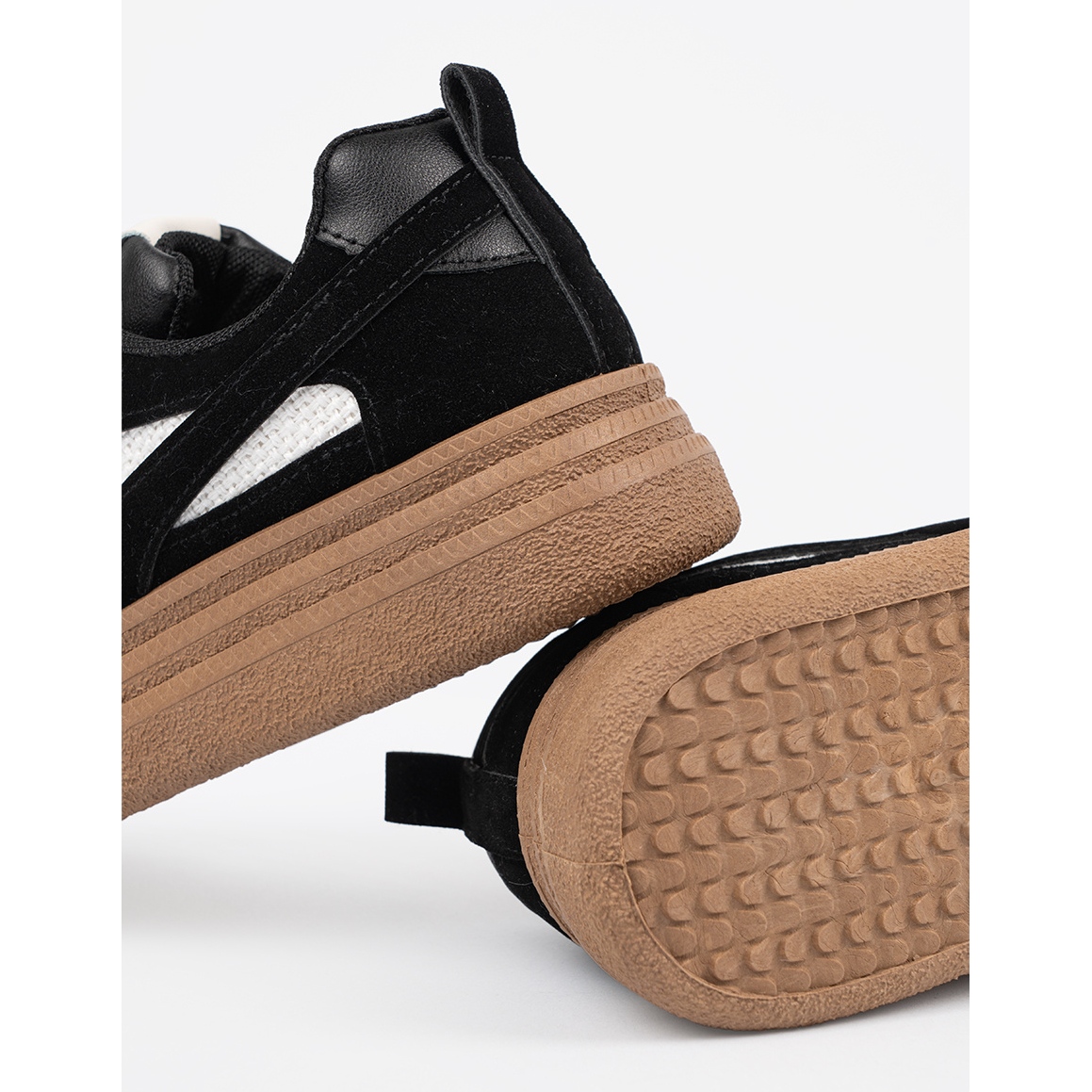 Détails: Baskets pour femmes noires avec inserts blancs. le noir