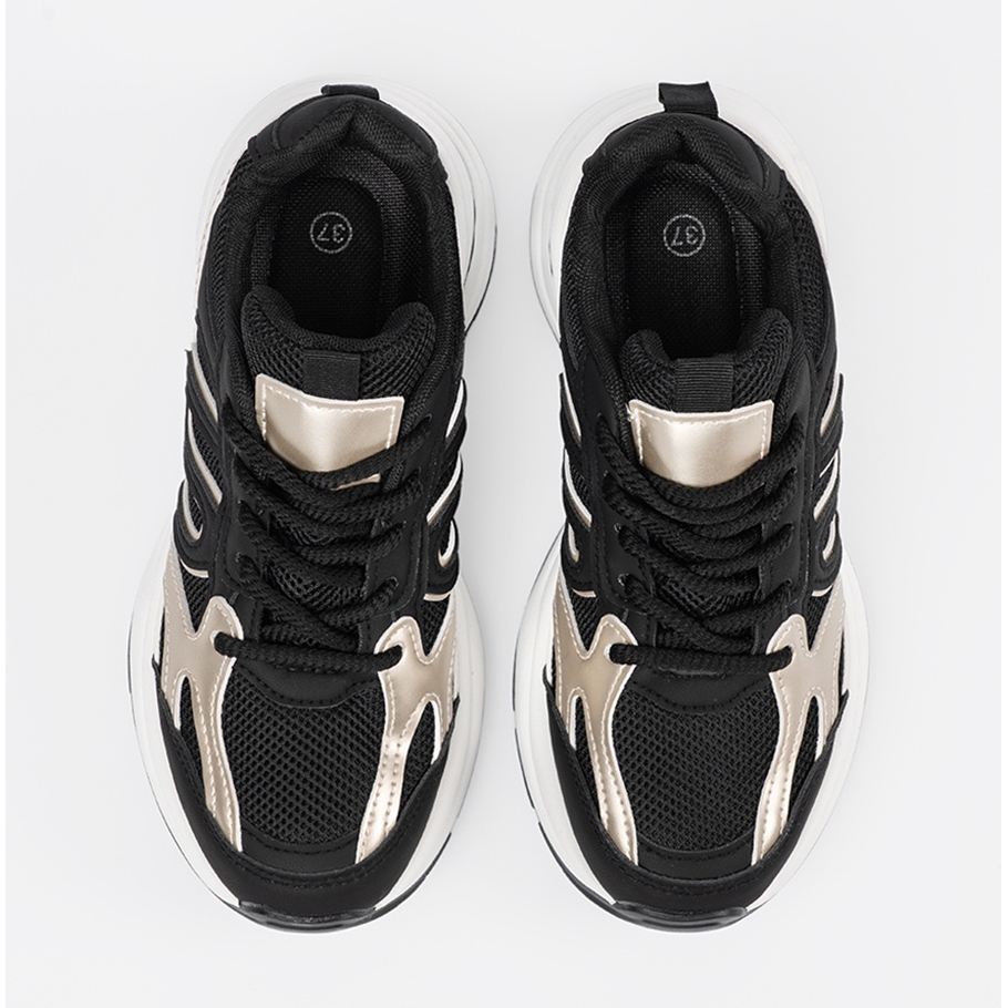 La couleur noire et or de ces chaussures s'inscrit parfaitement dans les tendances de la mode, et l'emballage original du fabricant en fait une excellente idée cadeau. Les baskets basses sont parfaites pour les stylisations de tous les jours, à la fois pour une promenade et pour des réunions avec des amis. Parié sur une combinaison élégante de confort et d'élégance avec ces baskets uniques!