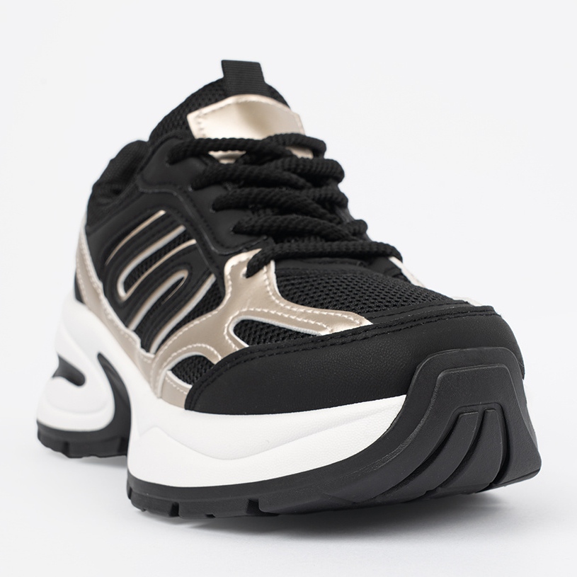 Détails: Baskets pour femmes noires avec inserts dorés le noir