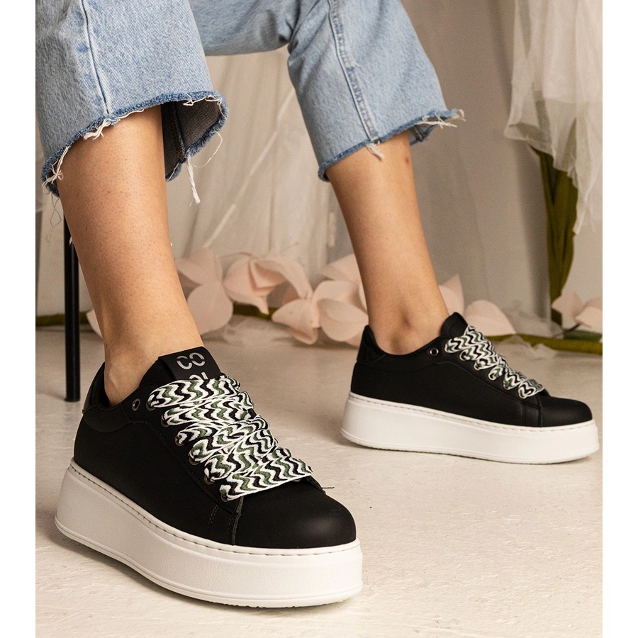 Détails: Baskets pour femmes noires avec un laçage massif =