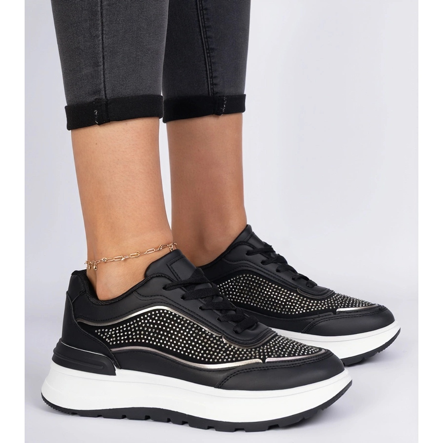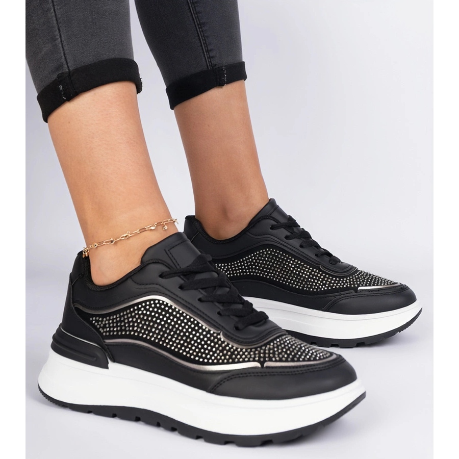 Choisissez des baskets noires avec des zircons et profitez du confort et de l'apparence à la mode à chaque étape!