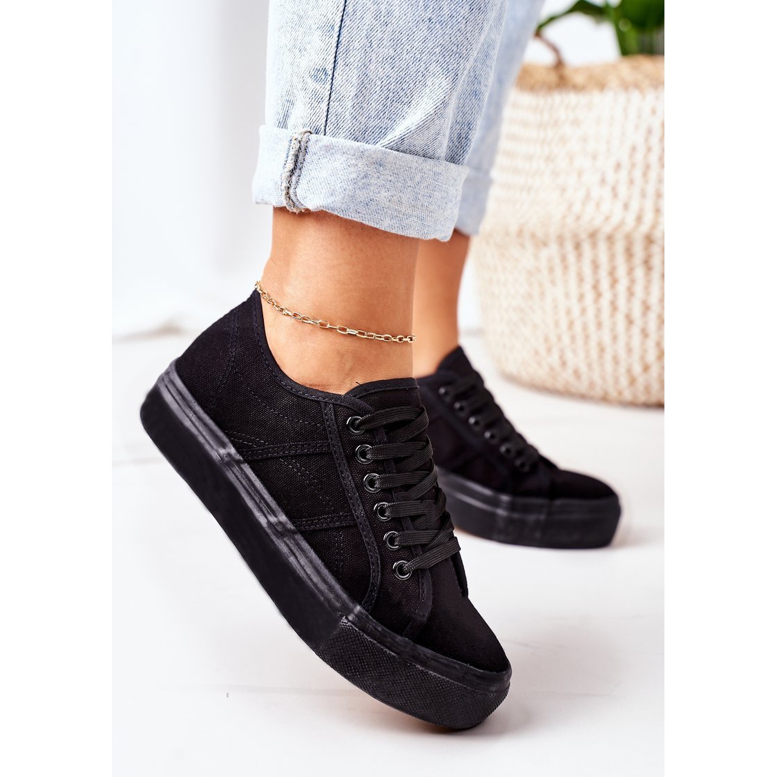 Les baskets à plateforme élégantes pour femmes PW1 en noir sont un choix parfait pour les femmes qui apprécient à la fois l'apparence à la mode et le confort. Ces baskets modernes se distinguent par une grande plateforme en caoutchouc de 3 cm de hauteur, qui ajoute non seulement quelques centimètres de hauteur, mais assure également la stabilité lors de la marche.