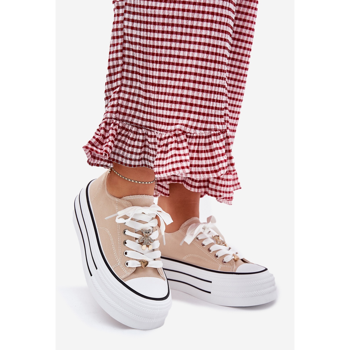 Détails: Baskets pour femmes sur la plate-forme avec des épingles dorées beige