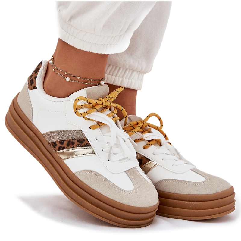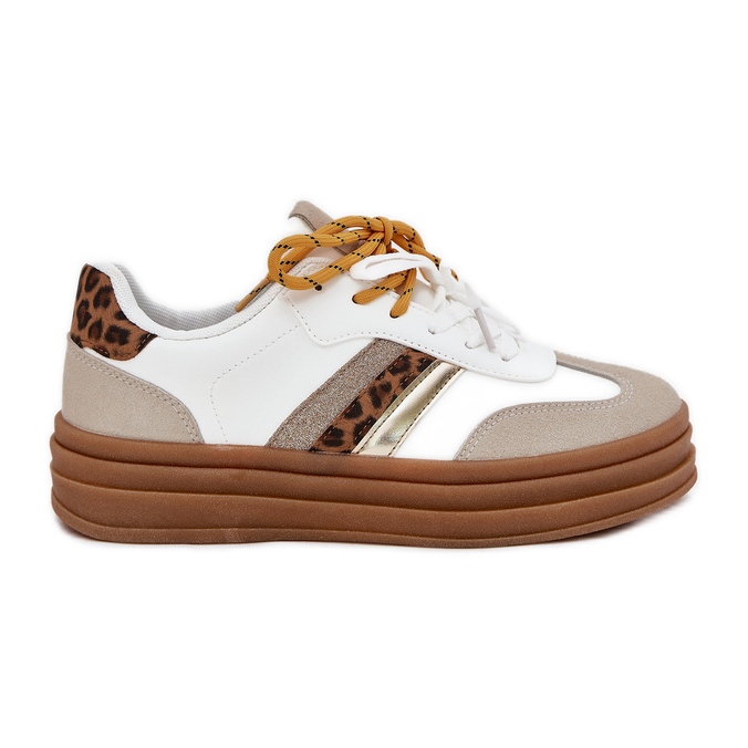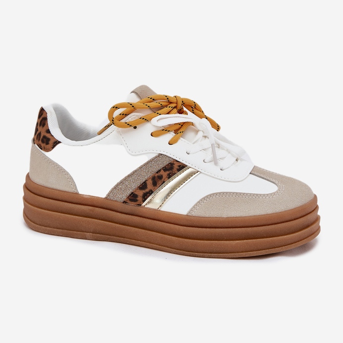 Détails: Baskets pour femmes sur la plate-forme avec imprimé léopard blanc à double laçage blanche