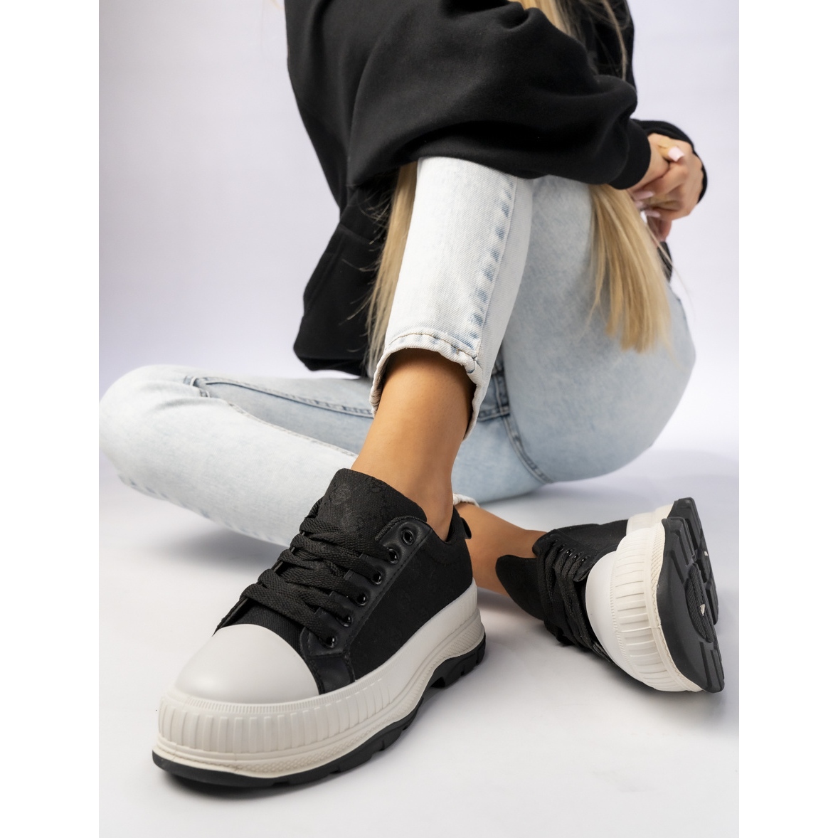 Nous présentons des baskets pour femmes sur la plate-forme noire - le choix parfait pour les femmes modernes qui veulent combiner le style et le confort. Ces baskets se distinguent par une combinaison contrastée de noir et blanc, ce qui leur donne un caractère unique. Leur design minimaliste signifie qu'ils correspondent à de nombreux styles différents, des tenues urbaines aux combinaisons occasionnelles ou à un look sportif.