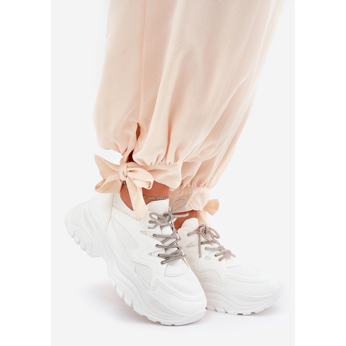 Détails: Baskets pour femmes sur une plate-forme décorative blanchie blanche