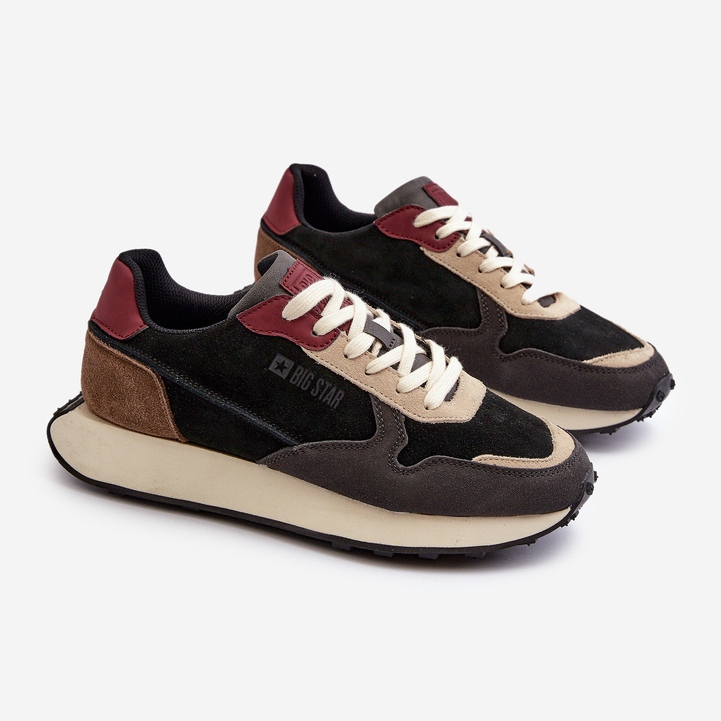 La fermeture sous forme de lacets traditionnels vous permet d'ajuster avec précision les chaussures à vos besoins individuels, garantissant stabilité et confort de port. Les baskets Memory Foam System Big Star NN174357 pour homme en noir sont un choix qui satisfera les hommes à la recherche de chaussures de tous les jours qui seront à la fois confortables, fonctionnelles et à la mode.