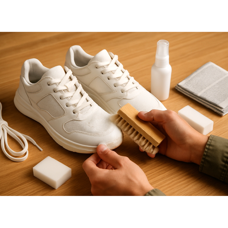 N'attendez pas que vos baskets soient très sales. Nettoyez-les régulièrement avec une brosse douce et du savon doux. Pour les semelles blanches, utilisez une éponge magique ou du dentifrice.