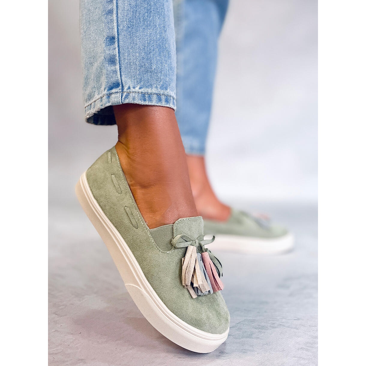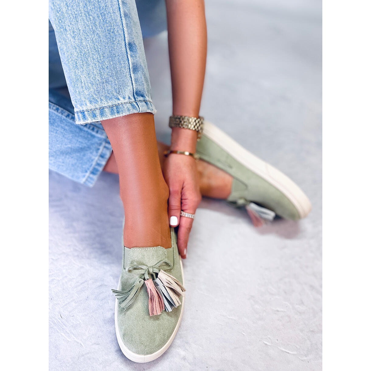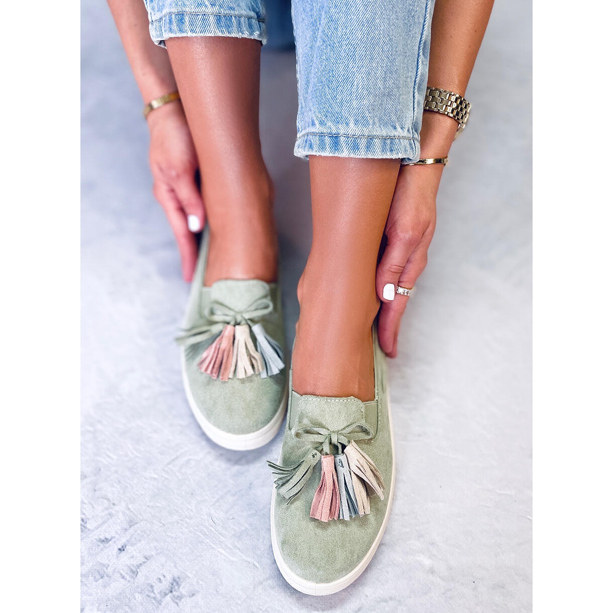 **Baskets printanières BM Salma Green à franges, vert - La quintessence du style bohème pour tous les jours**