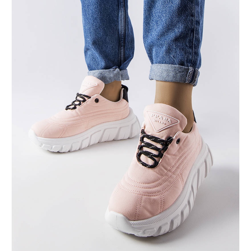 Les baskets ont une couleur rose tendance, qui ajoute de la fraîcheur et de l'énergie, et le fond en caoutchouc blanc garantit non seulement la stabilité, mais également une excellente absorption des chocs à chaque pas. Le bout rond et la fermeture à lacets assurent un ajustement optimal au pied, et la plateforme haute de 5,5 cm rend les baskets non seulement confortables, mais allonge également optiquement les jambes.