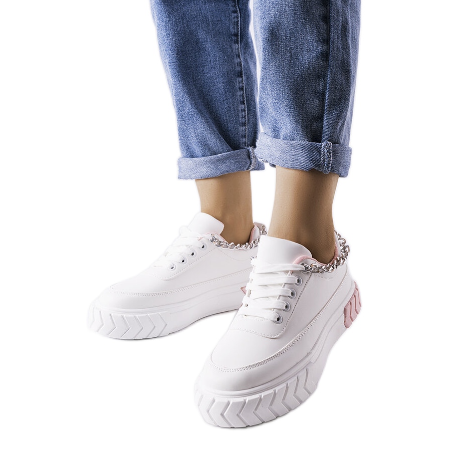 Détails: Baskets roses avec chaîne de Thilda blanche