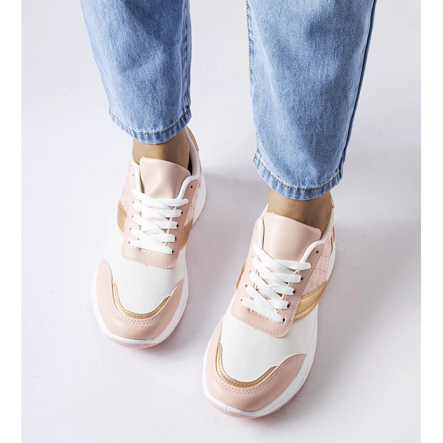 Détails: Inna Baskets roses et blanches avec un accent duffy doré