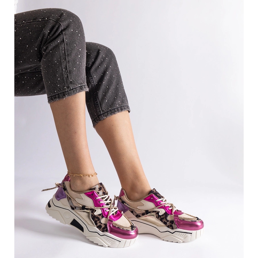 Découvrez votre style avec des baskets roses décorées de corde de zircon! Le modèle YY-22 de la marque "Autre marque" est une combinaison de design à la mode et de praticité, qui est parfait pour les stylisations de tous les jours. Ces chaussures uniques en Fuchsia intense, avec des accents beiges élégants, attireront certainement l'attention et ajouteront du caractère à chaque tenue.