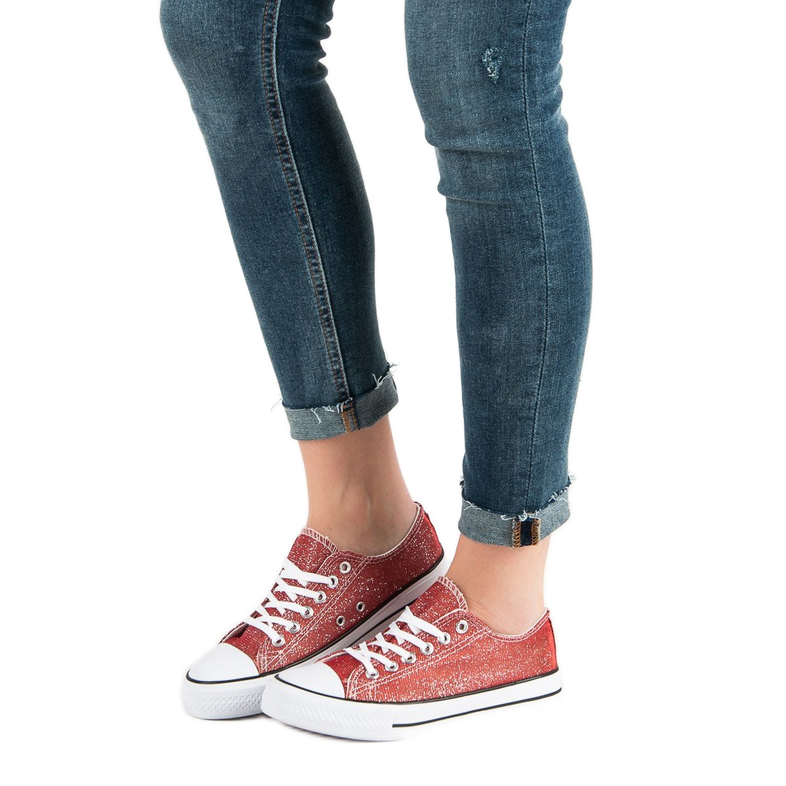 La couleur rouge avec un effet pailleté brillant rend ces baskets parfaites pour diverses occasions, aussi bien au quotidien que pour les occasions plus décontractées. Grâce à leur style décontracté, ils s'accordent parfaitement avec des jeans, des robes et des jupes, créant des combinaisons uniques.