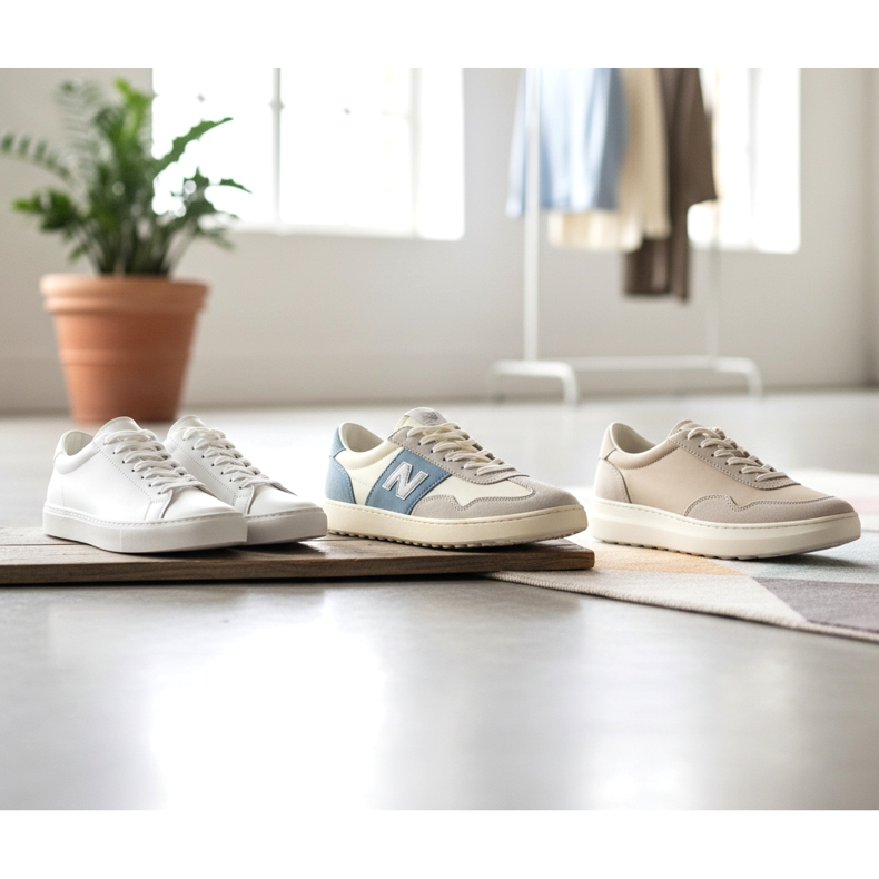 Le deuxième type est celui des baskets rétro slim : des modèles bas faisant référence aux années 70 et 80 avec une rayure subtile ou un logo minimaliste. Ce style fonctionnera bien aussi bien dans des tenues décontractées de tous les jours qu'en combinaison avec des articles de garde-robe plus élégants. Les versions aux couleurs pastel - crème, gris, beige - sont particulièrement appréciées au printemps et à l'été 2026.