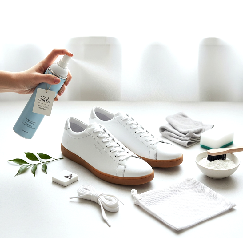 Les baskets fines et lumineuses sont belles, mais elles nécessitent des soins réguliers. La base est la protection contre la saleté immédiatement après l'achat : l'imprégnation en spray des tissus et du cuir est une étape obligatoire avant le premier port. Appliquez-le uniformément et laissez-le sécher avant de quitter la maison.