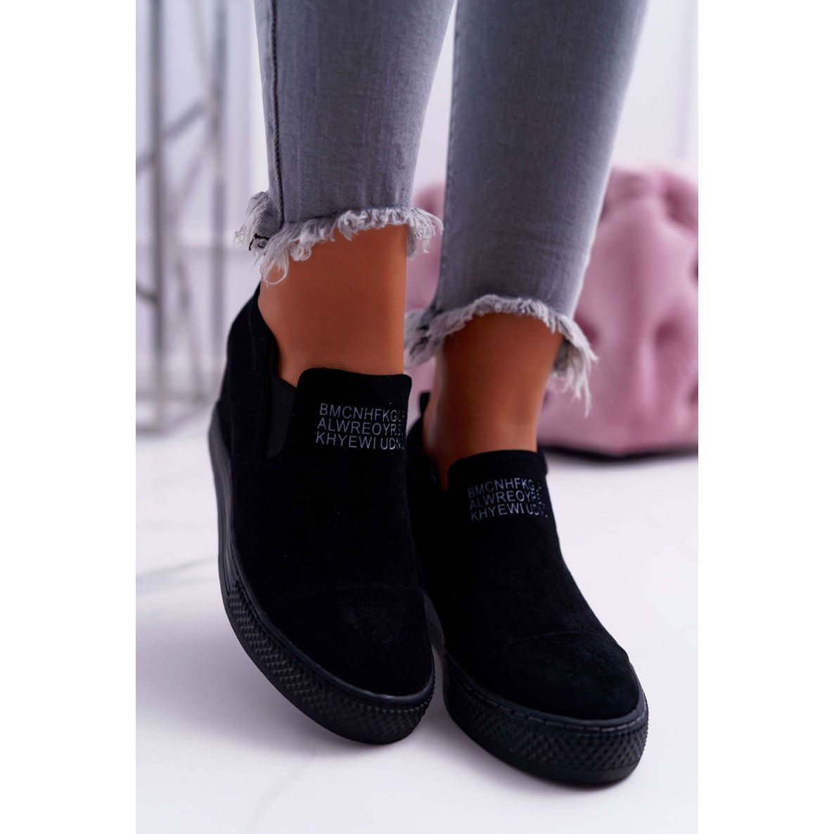 Nous vous présentons les superbes baskets pour femmes Lu Boo Sneakers en version slip-on, modèle Kaori ! Ces chaussures compensées uniques sont un incontournable absolu dans toute garde-robe à la mode. Fabriqués en éco-daim de haute qualité, ils offrent non seulement un aspect esthétique, mais également un confort de port tout au long de la journée.