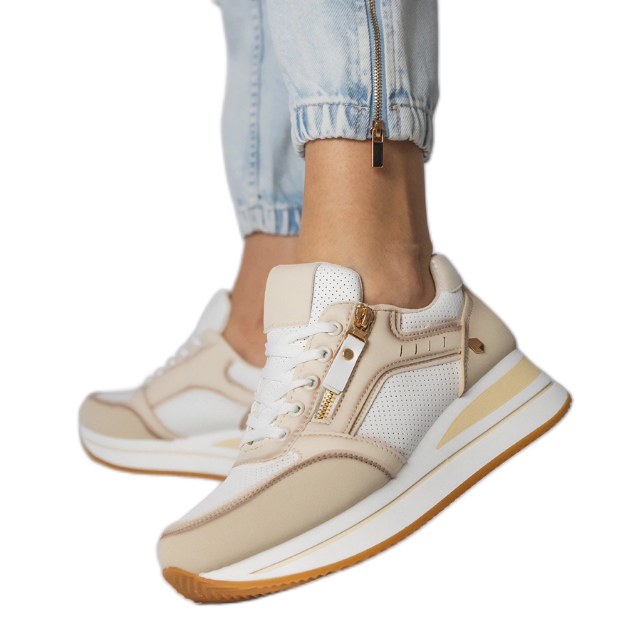 Les baskets offertes se distinguent par une couleur beige élégante, qui vous permet de correspondre facilement à divers styles - du décontracté à plus de sports. La décoration sous la forme d'un curseur leur donne un accent moderne, ce qui en fait le choix parfait à la fois quotidiennement et pour des voyages actifs.