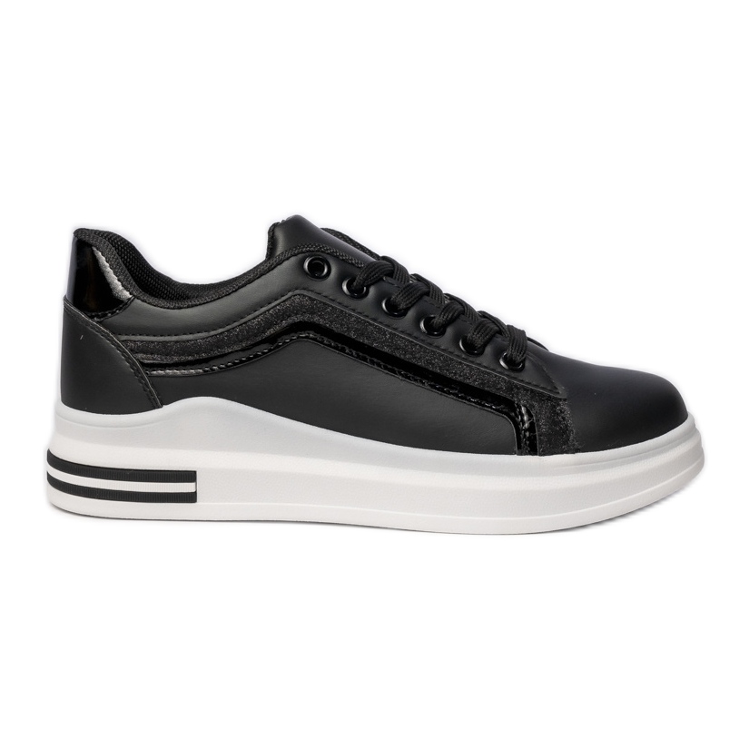 Nous présentons des baskets sportives féminines dans une couleur noire élégante - une combinaison parfaite de style et de confort. Ces chaussures modernes se distinguent par un design minimaliste, qui s'inscrit parfaitement dans les tendances de la mode actuelles. Le noir classique, combiné à une semelle blanche et épaisse, leur donne du caractère et en fait un élément parfait des stylifications décontractées et sportives.