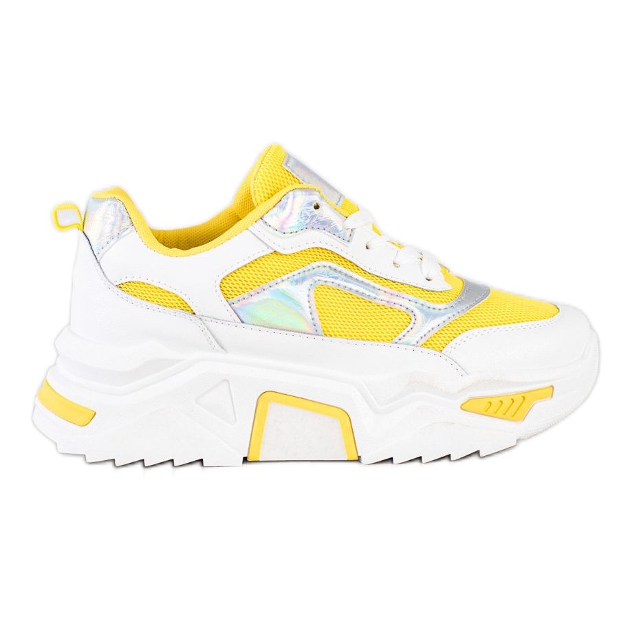 Découvrez le dernier modèle de baskets à plateforme de la marque SHELOVET, qui s'adapte parfaitement aux dernières tendances de la mode ! Ces chaussures élégantes, en blanc, argent et jaune, combinent un caractère sportif avec une touche d'élégance, ce qui en fait un choix idéal pour les occasions quotidiennes et plus décontractées.