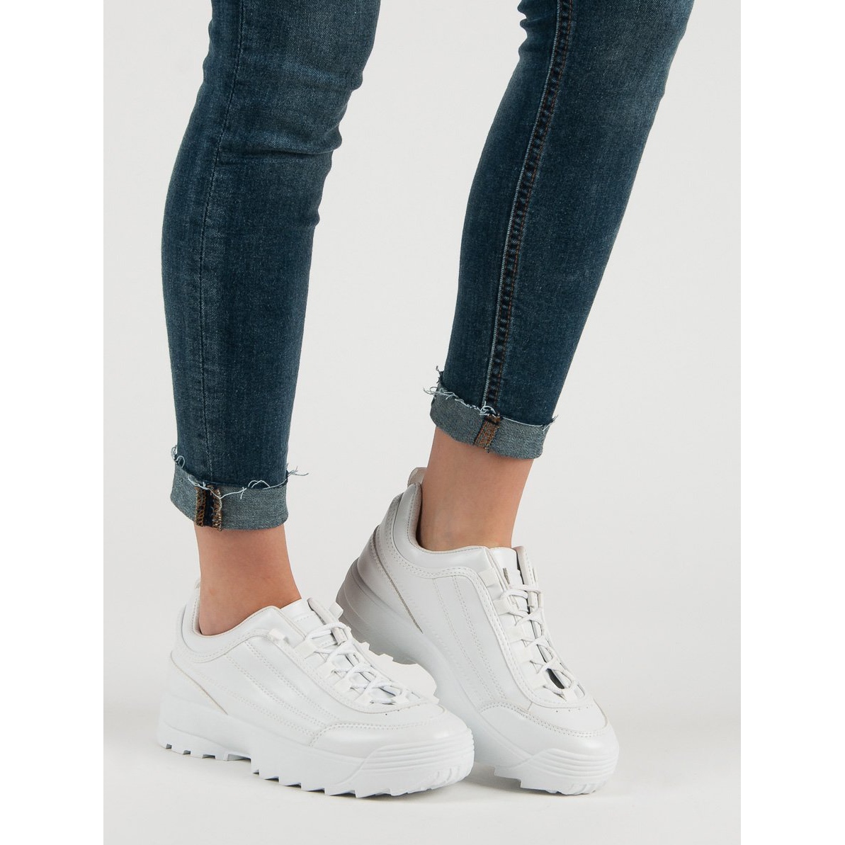 Détails: Baskets sur la plate-forme blanche