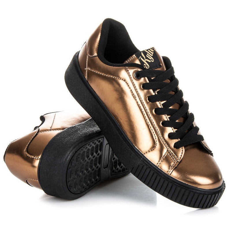 Découvrez un style et un confort uniques avec les baskets à plateforme Kylie en jaune ! Ces chaussures à la mode sont une combinaison parfaite d'élégance et de décontraction au quotidien. Leur plateforme noire de 2,5 cm contraste parfaitement avec le dessus doré brillant, créant un accent visuel accrocheur qui attirera l'attention dans toutes les rues.