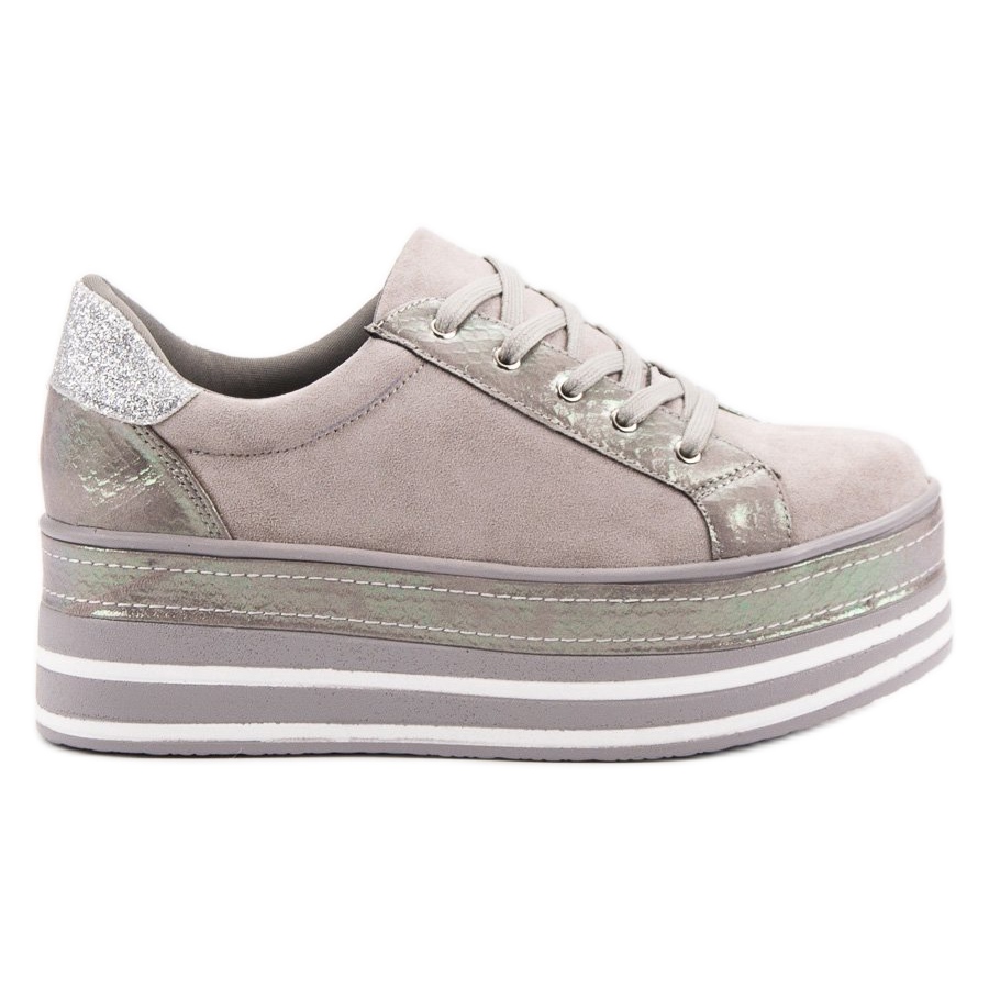 La construction haute et stable des baskets assure un confort tout au long de la journée. Un talon souple et fermé et une plateforme de 6 cm de haut rendent ces chaussures non seulement élégantes, mais aussi confortables. La semelle avec bande de roulement en plastique garantit une bonne adhérence et une sécurité sur diverses surfaces.