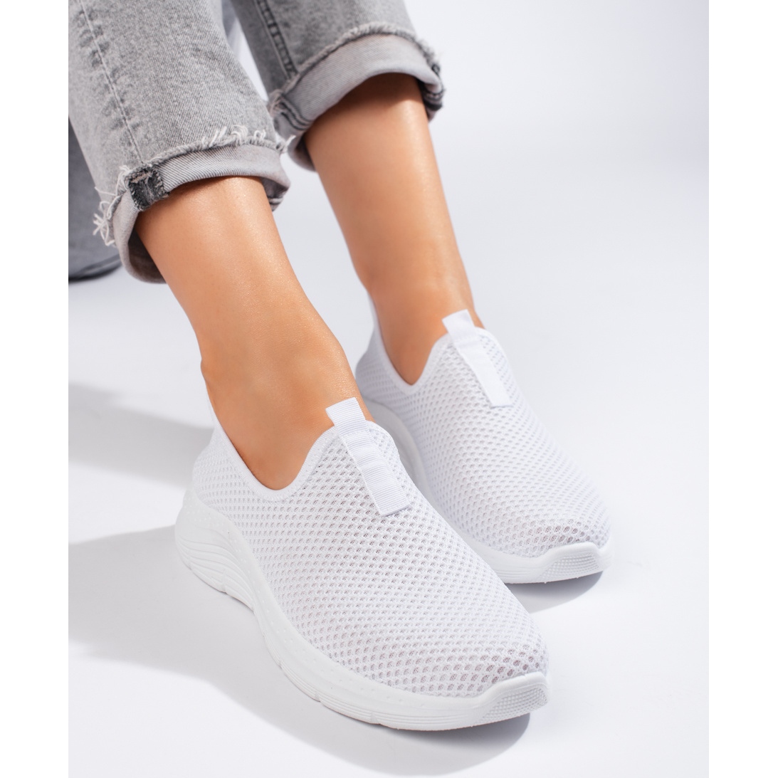 Le design des chaussures s'inscrit définitivement dans un style sportif et décontracté. Leur couleur blanche universelle permet de créer facilement une variété de tenues, des leggings de sport aux robes amples de tous les jours. Le bout rond et la semelle intérieure en textile offrent un confort supplémentaire, et la fermeture à enfiler permet d'enfiler et de retirer facilement les chaussures rapidement.