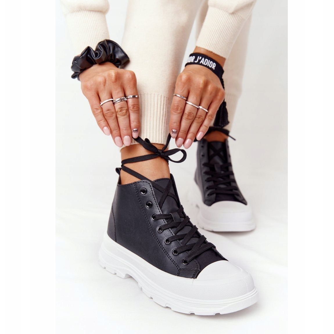 Les baskets Trissy se caractérisent par une large semelle d'une hauteur de 3,5 cm, qui assure un confort de port et ajoute une touche d'élégance à chaque pas. Le bout rond et la hauteur supérieure de 9,5 cm permettent aux chaussures de bien s'adapter à la forme du pied, et la semelle intérieure en matériau souple garantit un confort total tout au long de la journée.