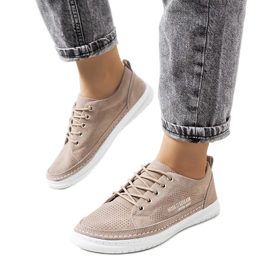 Les baskets beiges Valeska sont un complément parfait à n'importe quel style, et leur fond en caoutchouc blanc souligne le caractère moderne du modèle. La hauteur des chaussures est de 9 cm et la plateforme de 2 cm, ce qui les rend basses tout en ajoutant un peu de hauteur.