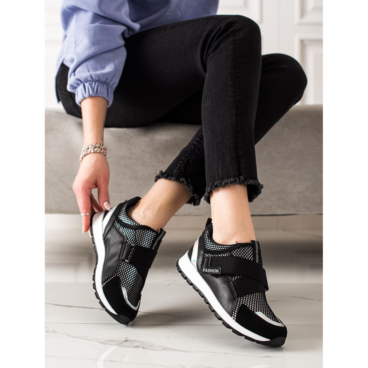 Découvrez les élégantes baskets fermeture scratch de TRENDI - la combinaison parfaite entre confort et mode ! Ces chaussures de sport noires sont un choix parfait pour les femmes actives qui apprécient à la fois le confort et l'apparence à la mode.