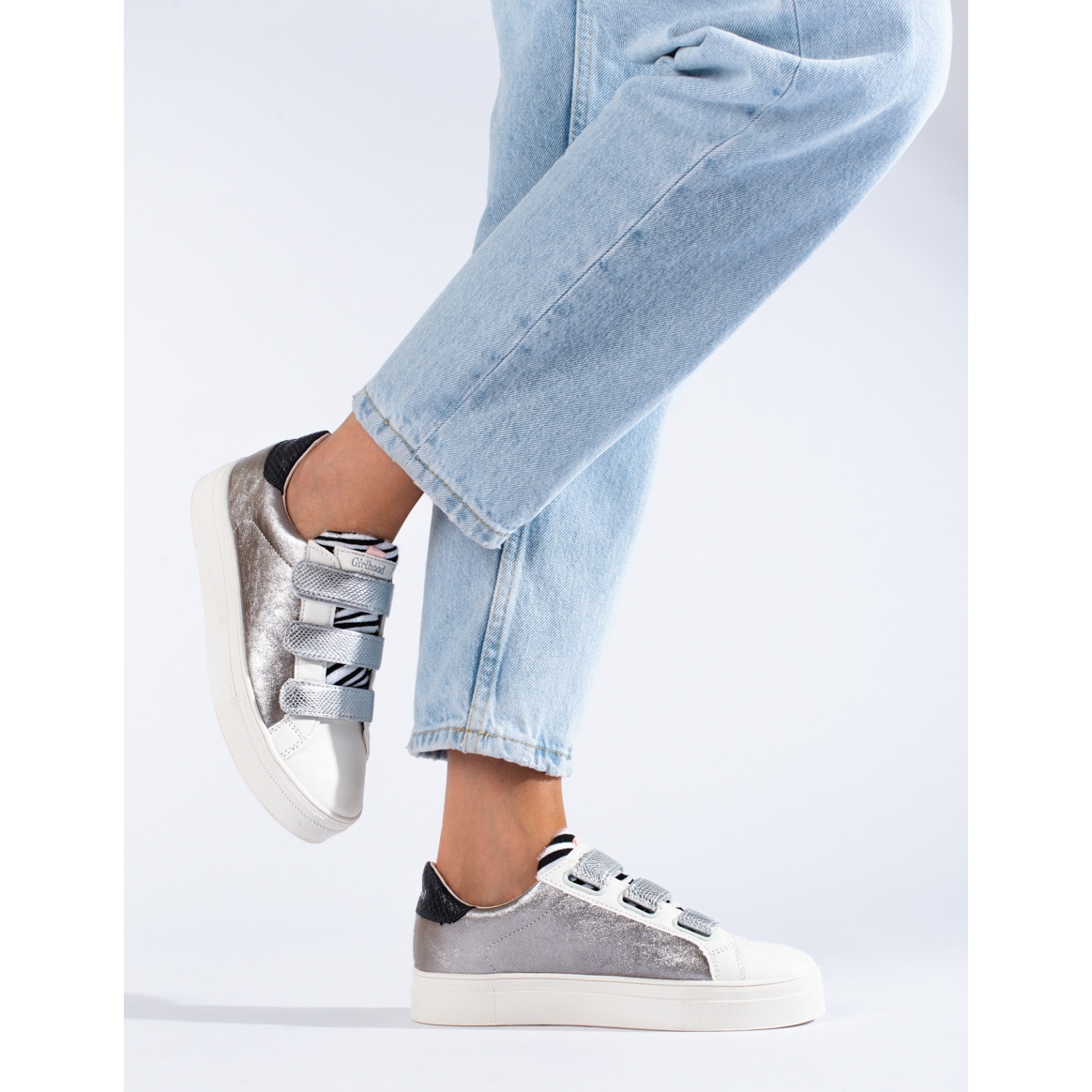 Détails: Baskets velcro Shelovet argentées et blanches pour femme