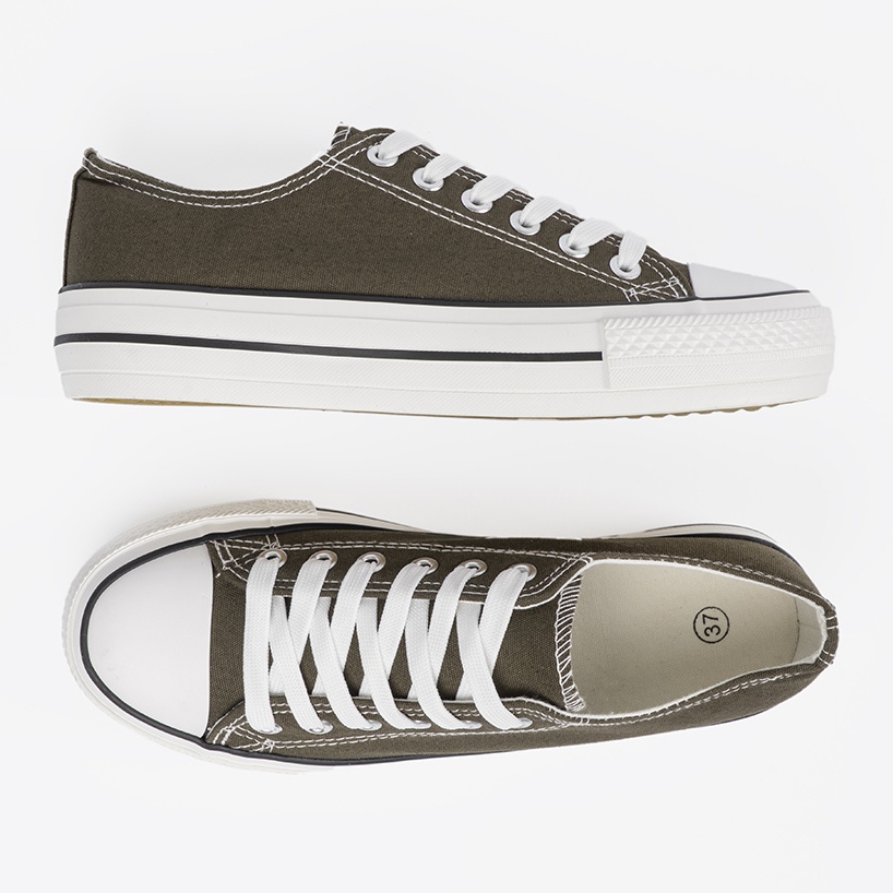 Nous présentons des baskets féminines vert foncé qui combinent parfaitement un style sportif et décontracté! Ces chaussures extrêmement confortables sont le choix parfait pour toute occasion - à la fois pour une promenade dans le parc et pour une réunion avec des amis.