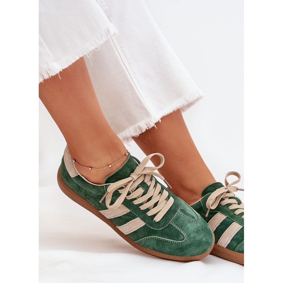 Les baskets pour femmes en daim naturel, avec une tige basse, est une combinaison d'élégance et de confort. Le laçage classique permet un ajustement parfait, et les orteils arrondis donnent à la subtilité les chaussures. L'insert en cuir et doux offre un réconfort tout au long de la journée, et la coupe élégante fait que les baskets correspondent à de nombreux styles différents - du décontracté à plus élégant. Parfait tous les jours. Lorsque vous choisissez une taille, veuillez utiliser le tableau des tailles.