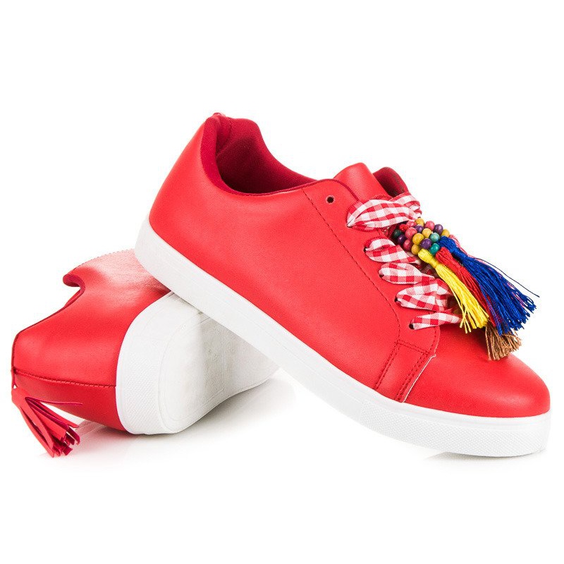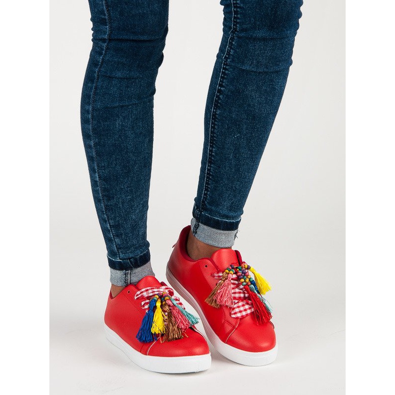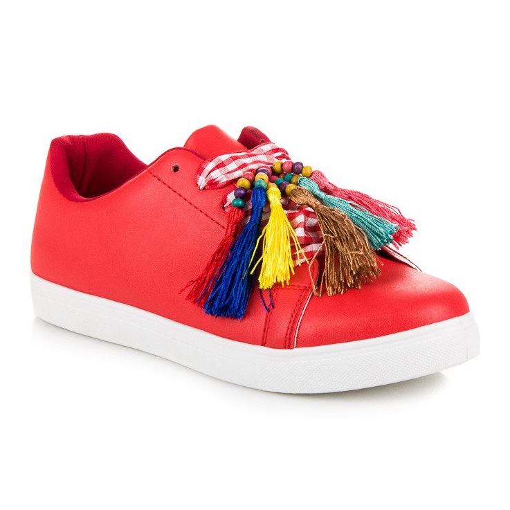 Les baskets VICES rouges sont le choix parfait pour les femmes qui veulent se démarquer de la foule. Fabriqués en cuir écologique, ils allient design moderne et confort de port. Leur reliure colorée unique et leurs franges placées à l'arrière leur confèrent un caractère unique, rendant chaque pièce originale et pleine de style.