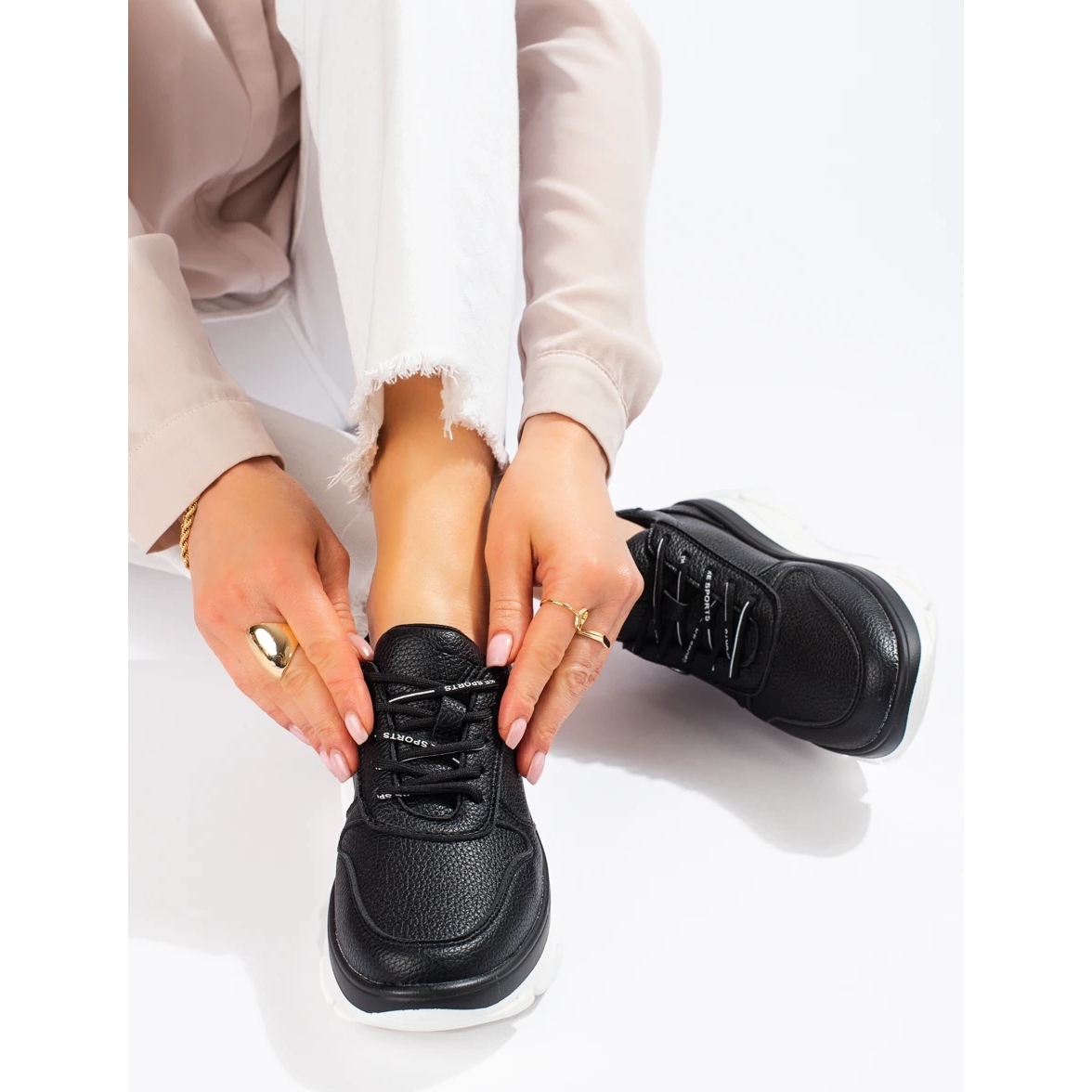 Vinceza - Chaussures de sport pour femmes noires sur une semelle épaisse