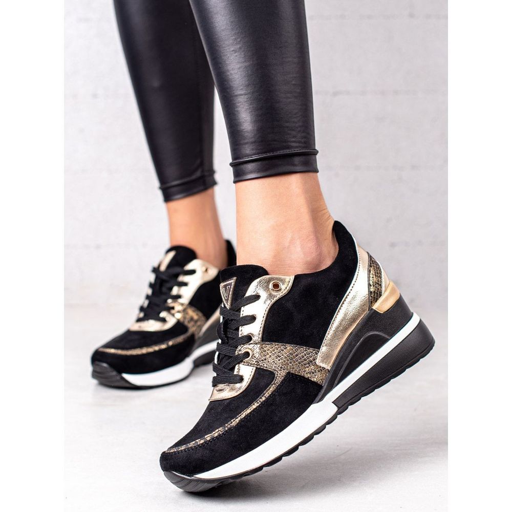 Découvrez un style et un confort uniques avec les baskets VINCEZA noires et dorées. Ces chaussures de sport, créées pour les femmes, allient élégance et fonctionnalité au quotidien. Fabriquées en cuir écologique de haute qualité et en simili daim, ces baskets allient un look tendance à un confort inégalé.