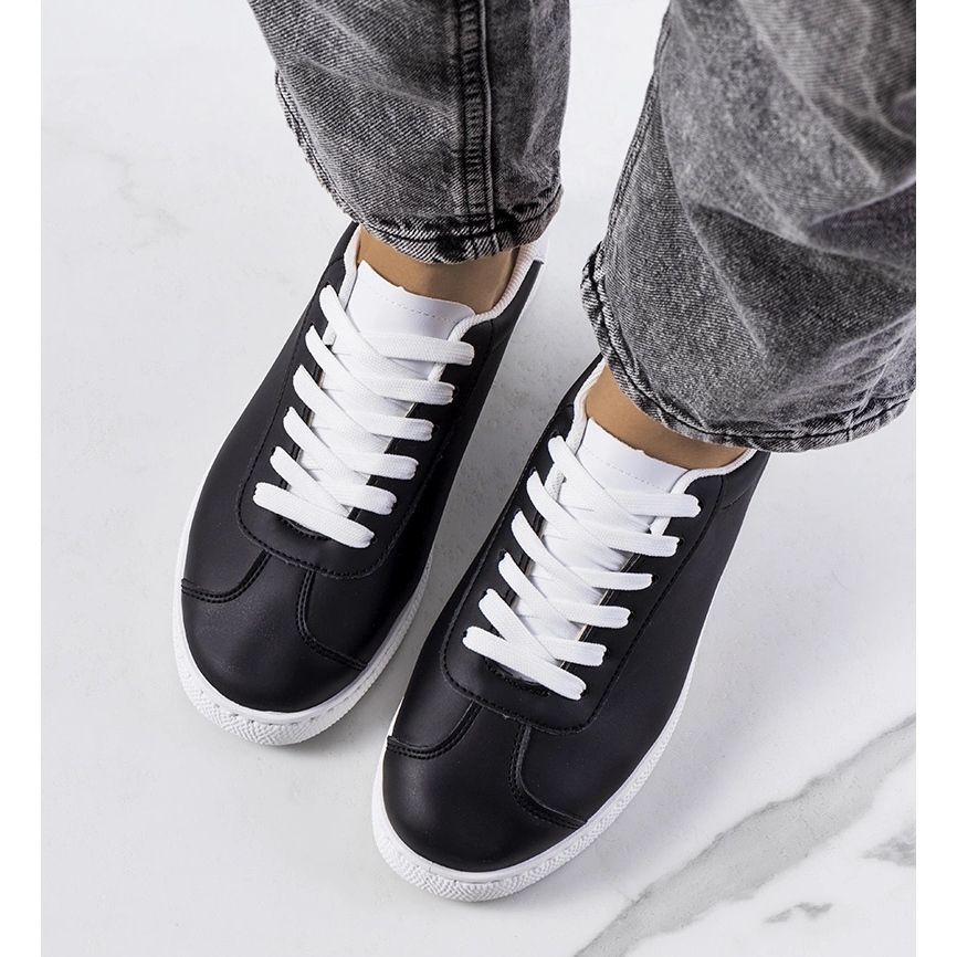 Des baskets classiques et basses en noir avec des détails blancs, qui complèteront parfaitement les stylifications printemps et d'été. Une coupe simple et intemporelle avec un nez rond et une semelle en caoutchouc blanc crée un modèle universel qui correspond à la fois en jean et en robes d'été.