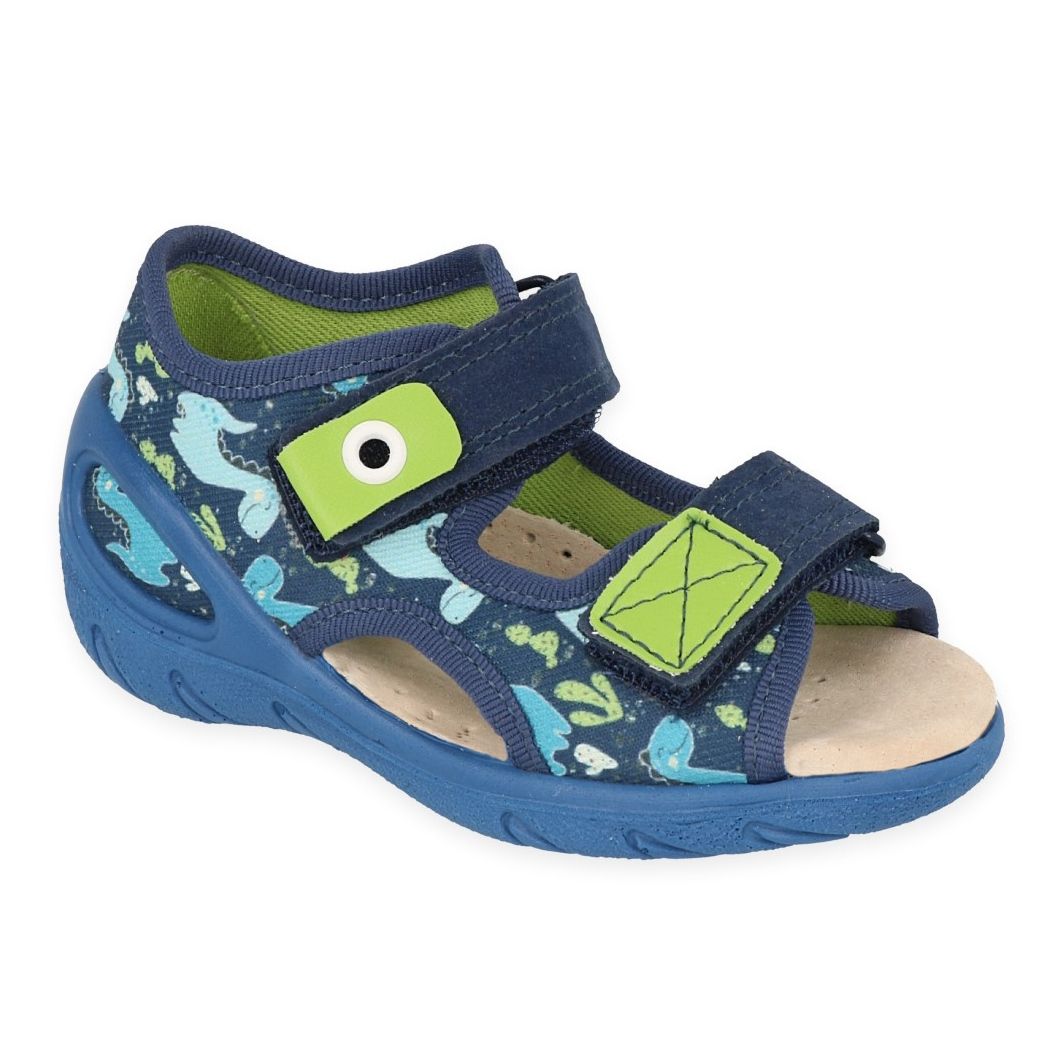 Découvrez les sandales parfaites pour votre enfant ! Befado pu 065X163 est une chaussure pour enfant unique aux couleurs bleu marine, bleu et vert qui allie confort, sécurité et style. Fabriqués à partir de tissus de coton aérés et de tissus pour chaussures, ils assurent une ventilation adéquate pendant les journées d'été.